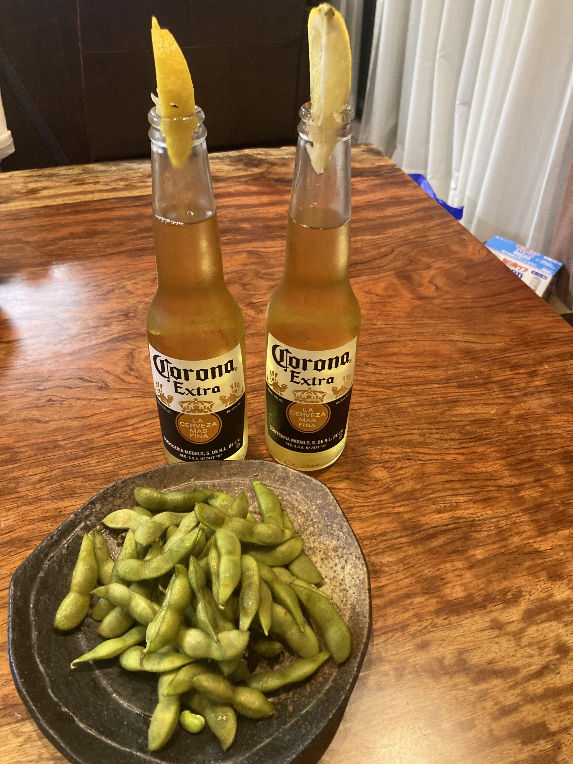 外に出ない時の家でのアルコールはやはりビールかな。(外の店でもまずはビールだね(笑))。この時期はとくに軽いさわやか系がよい。というか元来私は水のようなのど越しの良いビールが好きだ。バドワイザーとかこの写真のコロナのように。この時はライムではなくレモンにしたが、とてもさわやかであった。あと正反対なのかもしれないがギネスが好きだ。特に冬場に飲むのが美味しい。家では缶のギネスを買ってギネス専用のグラスに注ぐが、どんな注ぎ方をしてもオーバーフローしないのが良い。そして注いでから泡が上の方に集まっていく過程も素晴らしい。ギネスの愛すべき漆黒が登場してさぁ飲もう!!!という気になる。コロナにしてもギネスにしても、飲む前のひと手間っぽいのがいいのかな。